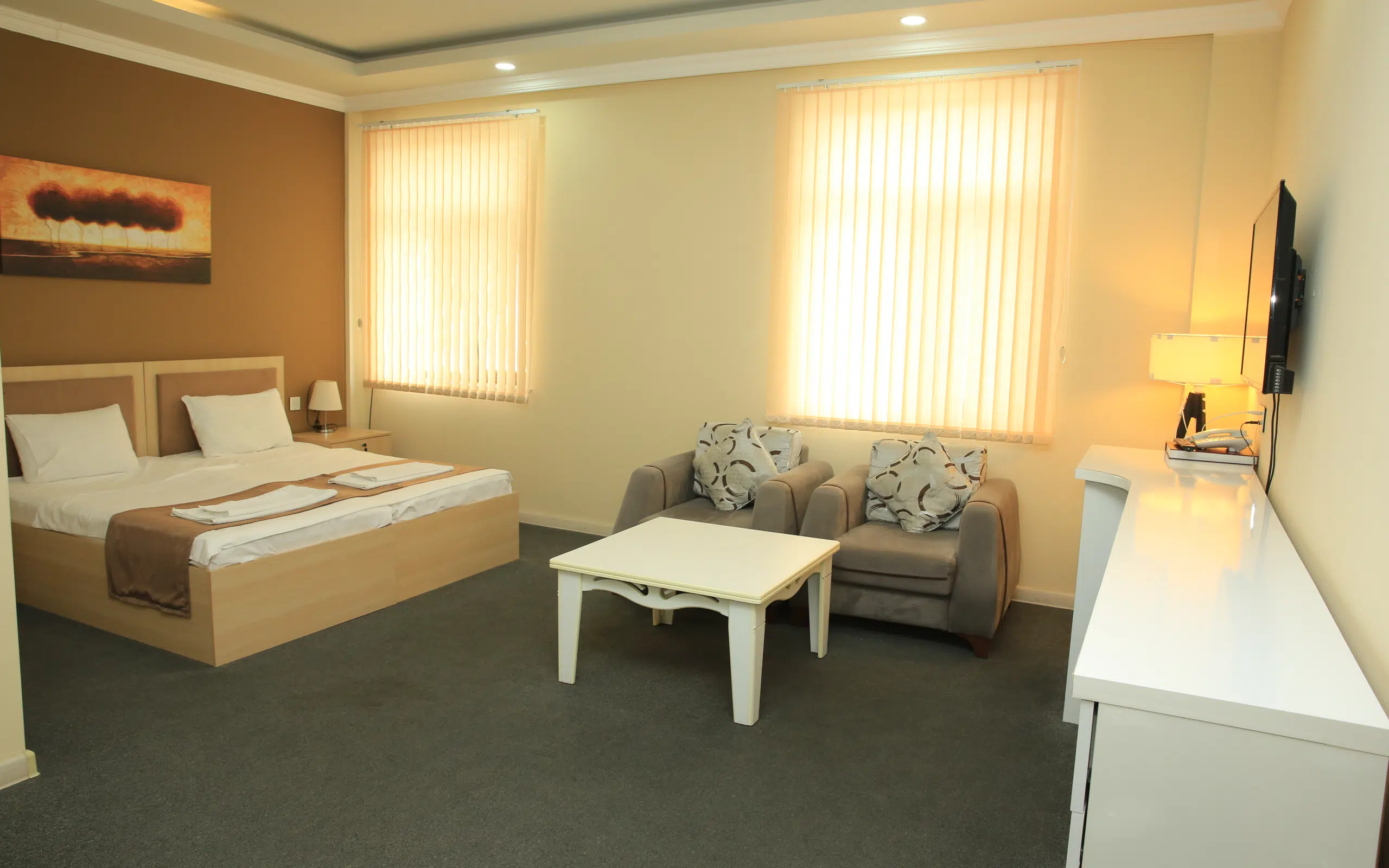 Arena Hotel Aghjabadi is offering accommodation in Aghjabadi district. All rooms are equipped with a wardrobe, flat-screen TV and air conditioning. Guests also can enjoy garden views and walk in the park. The private bathrooms is fitted with a bidet, shower and free toiletries.